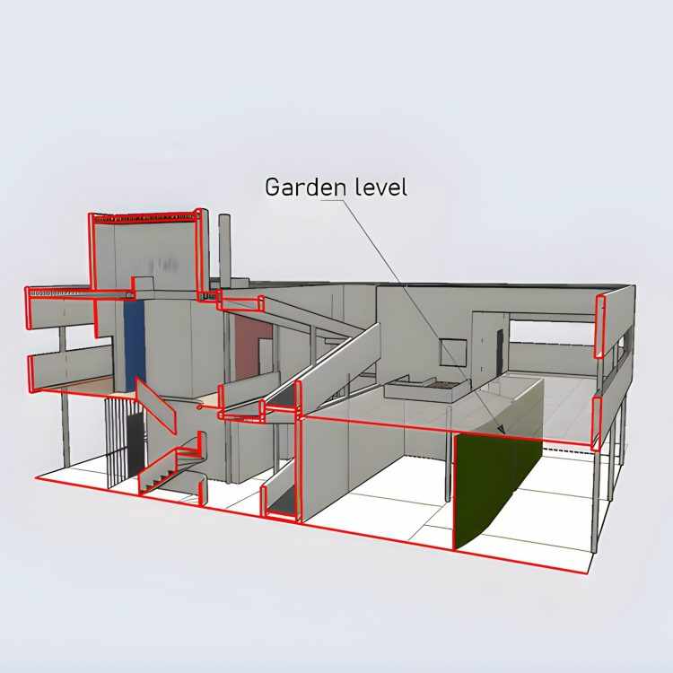 The design of the house embodies Le Corbusier’s “The Five Points” of architecture, which articulate his principles for the modern aesthetic: